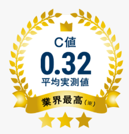 - 平均実測値はC値0.32㎠/㎡と業界最高水準を達成