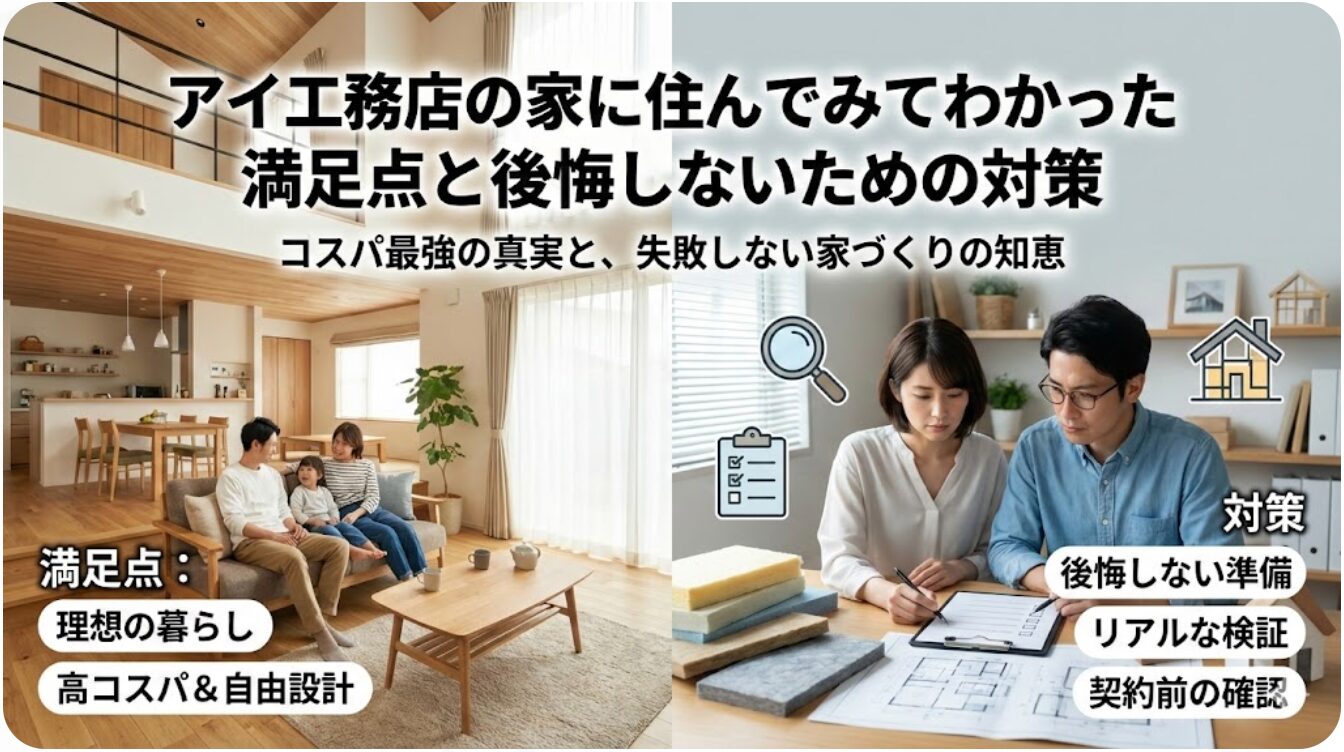 この記事では、アイ工務店のリアルな住み心地について、満足できるポイントと、後悔しないために知っておくべき対策を、僕なりに徹底的に分析してみました。