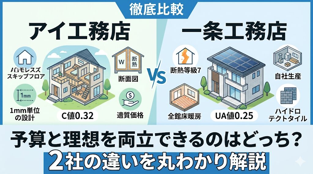 アイ工務店と一条工務店を徹底比較!予算と理想を両立できるのはどっち?