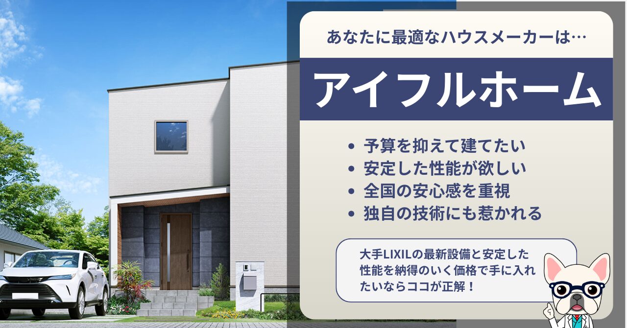 アイフルホームは、住宅設備最大手のLIXILグループが展開しているハウスメーカーです。最大の強みは、大手グループのスケールメリットを活かした高いコストパフォーマンスにあります。1,000万円台から検討できる価格帯ながら、断熱等級5〜6相当の安定した性能をしっかり確保できるのが魅力ですね。