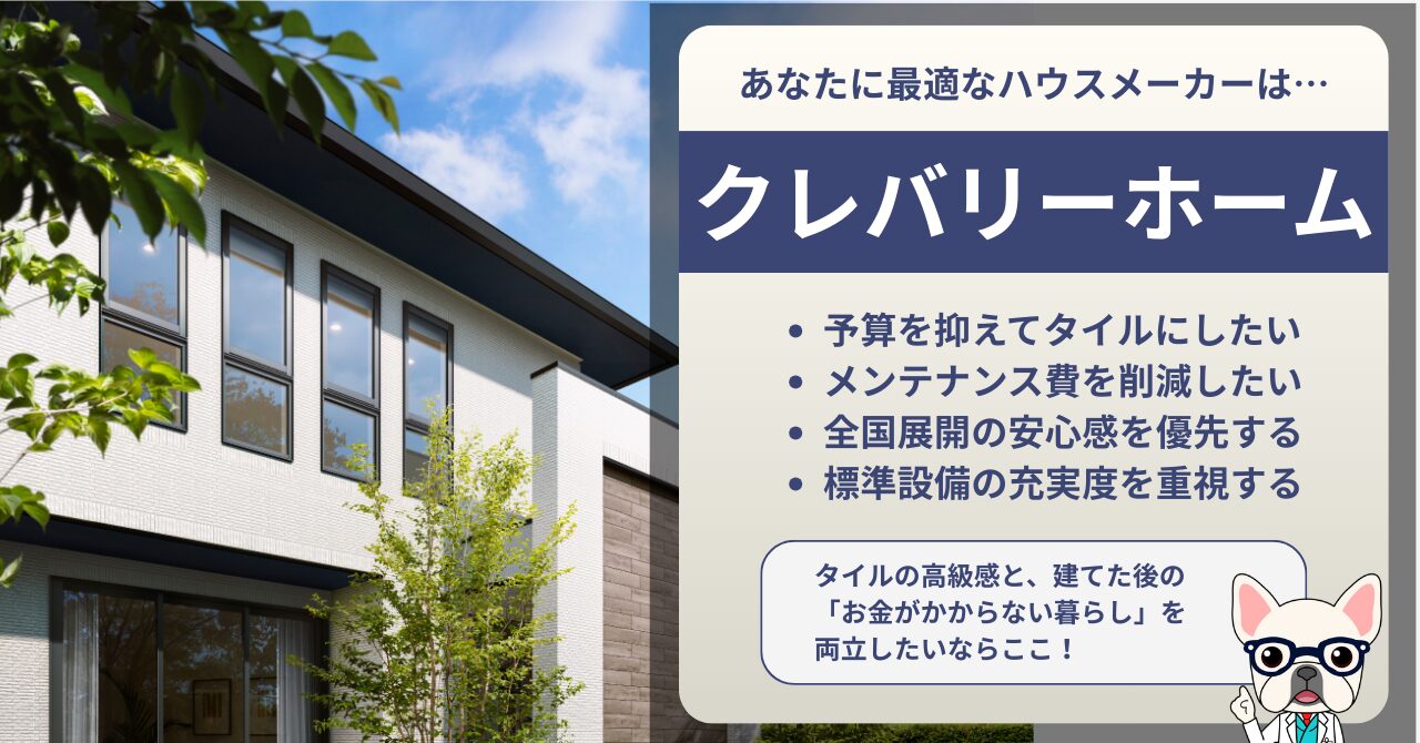 | クレバリー ホーム | 標準で「総タイル外壁」 メンテナンス費を抑えたい実力派 |