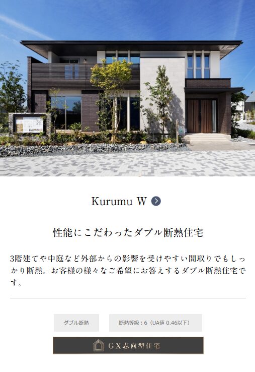 | ダイワハウス | xevo GranWood | 断熱等級6 クリア | HP掲載なし | 100~130万円 |