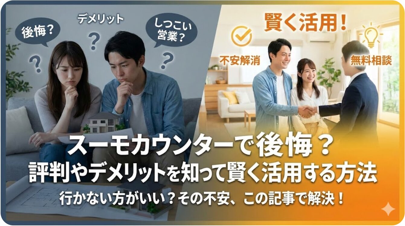 「スーモカウンターで後悔したくない…」そう思って検索されたあなたは、注文住宅を建てるという大きな決断を前に、期待と同時に不安も感じているのではないでしょうか。